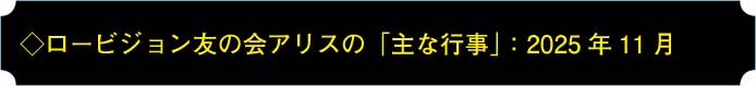 | *ロービジョン友の会アリス* 第25回 総会次第* 1.開会の言葉 * 2.会長挨拶 * 3.議長選出 * 4.議 題* ① 2024(令和6)年度活動報告 * ② 2024(令和6)年度会計報告(アリス基金を含む) * ③ 2024(令和6)年度監査報告 * ④ 2025(令和7)年度活動計画(案)について * ⑤ 2025(令和7)年度予算(アリス基金を含む)(案)について* ⑥ 新役員(案)について 5.閉会の言葉 * 6. お知らせ* ☆ * 閉 会* *~ 昼 食 ~* *☆13:00~14:00 :フォルクローレ演奏 「mada TAMAGO」 日 時 2025(令和7)年 5月 10日(土)、10:00~14:00 * 会 場 ほっと越谷* 2024(令和6)年度活動報告* 1.第24回総会 5月10日(土) ほっと越谷にて 40名* 2.「みなくるアリス」(定例会)、(開催月の第4土曜日を原則とする) ななサポこしがやにて 。7月20日、2025(令和7)年3月15日 2回 22名参加(4月27日はアメディアフェア、6月29日は七夕フェスタ、9月21日は協働フェスタにそれぞれ変更)。※ななサポこしがやは10月21日~1月31日まで改装のため利用不可* 3.専門部 * ① 会報 年2回 (6月:61号・12月:62号発行)*他は、事務局通信で連絡* ② 地域交流 * ・第23回七夕フェスタ 6月29日(土)ほっと越谷にて 、町田宏さんとまきりんさんの演奏 37名参加* ・福祉体験学習 6月15日(土) がもう寺子屋 * ・イオンイエローレシートキャンペーン参加(毎月11日)、5月寄付金・25,700円)* ・第17回協働フェスタ 2024(令和6)年9月21日(土)、中央市民会館にて * ・「災害時に役立つ、障がい者・女性を守る知恵」、11月9日(土)ほっと越谷にて 55名参加*ケネット13、女性のスペース結との協働企画* ③ 社会活動 * ・誰もがくらしやすいまちづくり実行委員会 2回* ・福祉審議会 4回* ・障害福祉課によるヒアリング 11月20日(水) 5名参加* ④ レクリエ-ション * ・おおぞら号バスツアー* 5月15日(水) 那須南が丘牧場 38名参加* 12月18日(水) 豊洲市場 26名参加* ・サークル活動 身体ほぐし こばと館にて 12回 109名参加* ・アリのみ 毎月第2木曜 魚鮮水産にて 12回* ・アリスAリーグ(ボウリング) ニューパールレーン武里にて* 4月11日(木) 5名参加* ・ありさんぽ 11月27日(水) 国立西洋美術館 6名参加* ・アリスカラオケ カラオケバンバンにて*7月21日**(日)4名参加、11月26日(火)6名参加 * ⑤ 訓練・情報ネット* ・アリスパソコン教室(勉強会) ななサポこしがやにて*毎月第1土曜日開催 11回 93名参加 * ・アリスどっとサロン(点字・スマホ勉強会) ななサポこしがやにて* 毎月第2火曜日開催 10回 57名参加* 4.新年会(担当 越谷北ブロック) *2025(令和7)年1月28日(火) 源氏総本店 25名参加* *2025(令和7)年度活動計画* 1.運営部* 第25回総会 5月10日(土) ほっと越谷にて * 2.みなくるアリス(定例会)(開催月の第4土曜日を原則とする)*4月26日、7月26日、9月27日、11月22日、*2026(令和8)年3月28日 その他必要な場合随時開催 ななサポこしがやにて* 3.専門部* ① 会報 会報発行 年2回 *(6月:63号発行・12月:64号発行)*他は、事務局通信での連絡とする* ② 地域交流*ほっと越谷第24回七夕フェスタ 7月1日(火)*協働ななサポフェスタ2025 9月20日(土)・21日(日)*ほっと越谷 市民協働事業(未定)・講演会等* 福祉体験学習、他* ③ 社会活動*誰もがくらしやすいまちづくり実行委員会*バリアフリー点検 越谷市社会福祉審議会*施設見学、他* ④ レクリエーション* おおぞら号で行く社会見学 随時* サークル活動 身体ほぐし こばと館にて 毎月第2水曜日開催* アリのみ 魚鮮水産にて 毎月第2木曜日開催* アリスAリーグ(ボウリング) 随時* アリスカラオケ 随時* ありさんぽ 随時* その他、料理教室、ランチ会、アリスSTT、DVD上映会など 随時* ⑤ 情報・訓練ネット* アリスパソコン教室(勉強会) ななサポこしがやにて*毎月第1土曜日開催* アリスどっとサロン(点字・スマホ勉強会) ななサポこしがやにて *毎月第2火曜日開催** ※新製品や関心のある製品の紹介やお試しも随時行う * 4.新年会 (担当:北部・春日部ブロック) (2026(令和8)年1月)* 5.その他* ・会員の個人情報は、会の活動目的以外には使用しません* ▽2025(R7)年度ロービジョン友の会 役員・委員名簿 〇運営部 会長 あぼ裕子 副会長 3名、村上かをる リリーチョン 鈴木弘子 書記 鈴木力也 会計 石川秀子 事務局 大里正二 〇専門部 会報 3名、池田弘子 村山英子 村上かをる 地域交流 4名、リリーチョン 大里正二 鈴木弘子 須永高志 社会活動 2名、あぼ裕子 鈴木弘子 レクリエーション 6名、大里正二 リリーチョン 笹岡ともこ 鈴木なおか 鈴木弘子 鈴木力也 訓練・情報ネット 5名、村上かをる 大里正二 須永高志 鈴木喜美代 武藤優夫 ▽ブロック長 5ブロック 越谷東・西 大里正二 越谷南 リリーチョン 越谷北 鈴木なおか 草加南部 渡邊淳子 北部春日部 村上かをる 相談役 松田和子 会計監査 2名、池田弘子 大里正二(越谷東)、(監査2名目は各ブロック持ち回りで担当) 以上 |