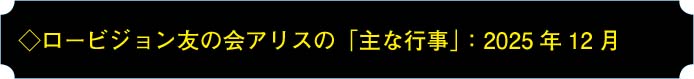 | 2024.12.28 あぼです・・・。 ◇1月のリリーさんのはればれは、17日(金曜日)と 31日(金曜日)です。 折り紙と 絵本 そしておしゃべりで 楽しい時間をご一緒しましょう。 宜しくお願い致します。 良いお年をお迎えくださいね~ 2024.12.24 あぼです・・・。 ◇アリス会報を ワードの 校閲 音声読み上げで 確認し、なるべく自然に聞こえるようひらがななどに直してみま した。 例えば 大里(おおざと→おおさと)、皆さん(みんなさん→みなさ)、方(ほう→かた)、和子(わこ→かずこ)など。 白杖 しろつえ は 括弧ではくじょうとひらがなにしてみました。 みなさんがお聞きになって気づいたことなどありましたら おおさとさんや あぼまでアドバイス頂ければ幸いです 大里です・・・ 2025年 *新年最初の「ありパソ」です 1月11日(土)10:00~12:00 こばと館 1階 作業室 ※2025年 *1月の「どっとサロン」は 『中止』します。 会場の手配ができませんでした |