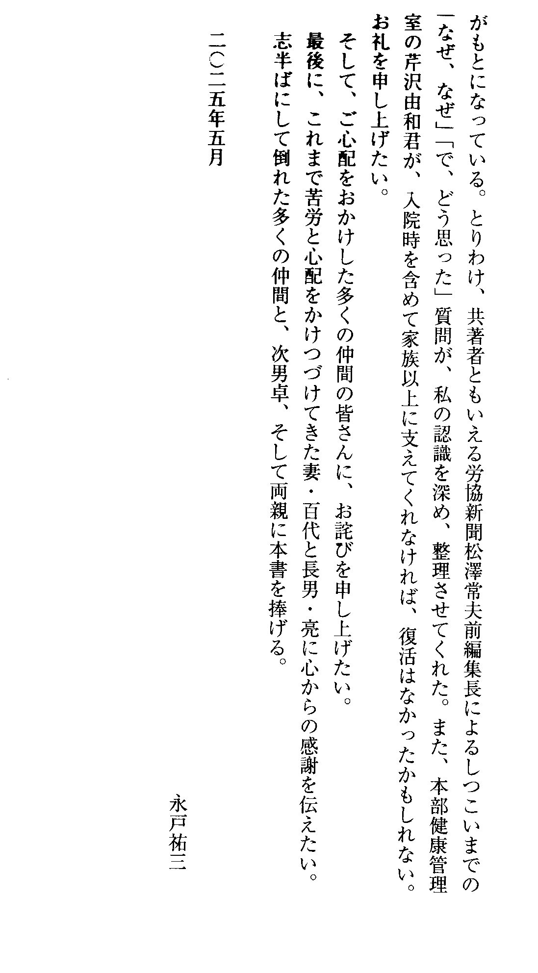 ◆「あとがき 本稿を草するにあたり、文献・資料等の便宜をあたえられた青竹豊(日生協)、西村一郎(大学生協)、永戸祐三(中高年事業団)の諸氏に感謝する、」と記述している。