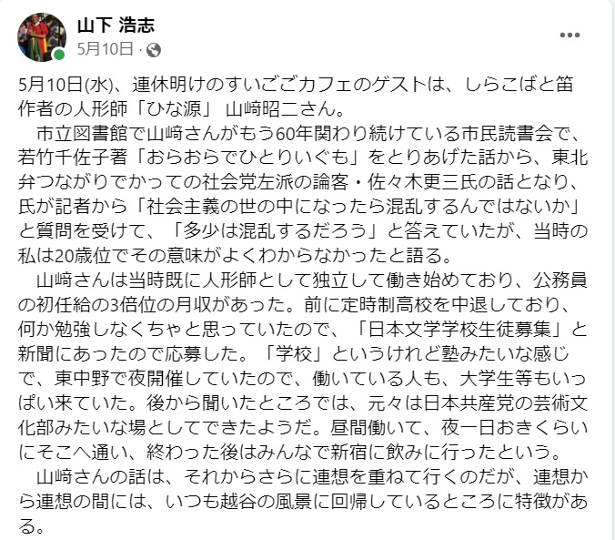 山下 浩志(facebookの発信)