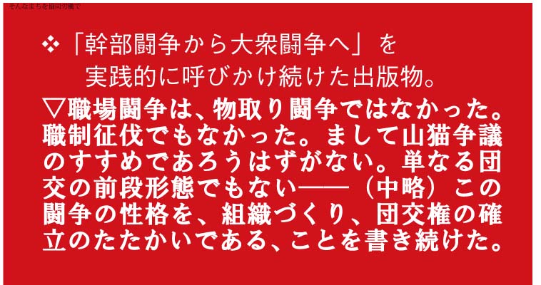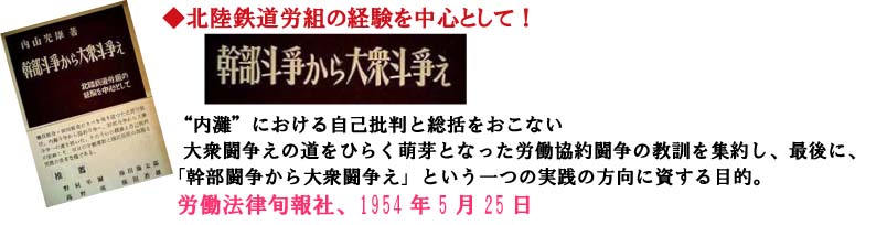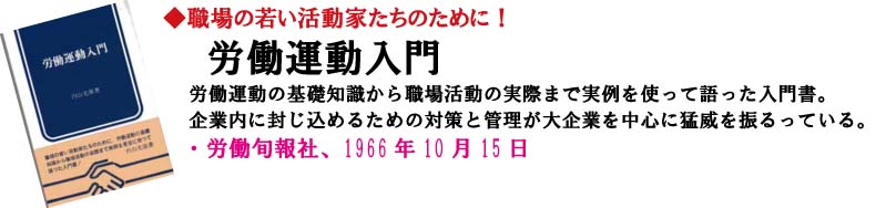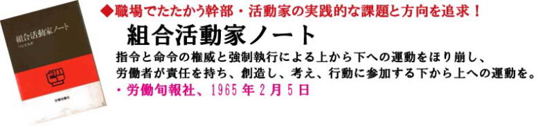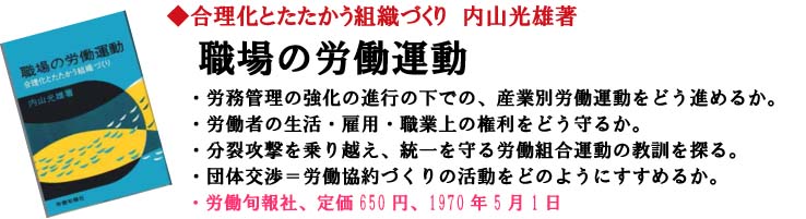 | ◇2013年8月 7日 (水):「内山光雄さんを偲ぶ」を寄贈されて(「ある編集者のブログ」に掲載。飯島信吾) 総評時代(「連合」ができる前)、「労働組合活動家」という人たちがたくさんいた。高度成長期の日本社会で、大学への入学率が1割を超えていなかった時代だ。 八幡製鉄所、石川島造船、三菱造船長崎などの著名大企業労組はもちろん、国労、全逓、全電通などの公共企業体労組、新聞・民放などのマスコミ労組、各地の地方自治体・私鉄総連など、生涯にわたって「労働者」に止まった(管理職層は別の階層)人たちが、「労働組合活動家」になった。 その時代、内山光雄さん(私鉄総連副委員長、総評副事務局長などを歴任、2010年没)は北陸の地(北陸鉄道)から、『幹部闘争から職場闘争え――北陸鉄道労組の経験を中心として』(1954年)や『職場闘争・職場オルグ――続:幹部闘争から職場闘争へ』(1959年)を書いて、今流に言えば「労働組合活性化の指針」を世に訴えた。 後にベストセラーとなった『組合活動家ノート』(1965年)、『新組合活動家ノート』(1973年)を書いた(以上の本は、労働旬報社刊)。 ![]() 内山さんは「職場の組織づくりとして職場闘争をつよめ、産業別統一闘争の組織化も積極的に追求し、のちの春闘の基礎づくりを私鉄総連を中心に発揮したリーダー」だ。 『追悼文集 内山光雄さんを偲ぶ』を読むと、16人の方が文章を寄せられている。兵頭釗さんや高木郁朗さんは知っているが、私たちの先輩の小松善雄さんが『職場の労働運動』の編集経過を書いているので、いつか紹介したいと思っていた。 裏方で何回か春闘講座で実務をやった経験があるが、内山さんはたいへん大柄の人で、豊富な経験をわかりやすく話し、圧倒された思い出がある。御本人に聞いたことがあるが、話のつかみや展開などは落語を学んでいたようだ。 仕事しては、単産研究として「私鉄総連の研究」(1970年代後半)を企画したときに、お世話になった(この文集では、高木郁朗さんが書かれている)。 その後、「観光労連の研究」を企画して、ツーリスト職場に何回かレジュメ作りでお伺いした記憶があるが、それも内山さんのアドバイスだったことも思い出した。 しかし「文集」を読むと、生涯にわたって「内山学校」をみずから開いて、組合活動家を育てていたことがよくわかる。 内山さんは、1970年代には妹さんが労働教育センターをつくり、その後の出版物はほとんどセンターから出すようになった。 ❖内山光雄の本 おすすめランキング: 評伝として『はじめに人間ありき―内山光雄と戦後労働運動』(池田実・前川 清治著、労働教育センター、2002年)がある。 ![]() 連合、全労連、全労協に分かれている今、新しい「ユニオン活動家ノート」を書き、ナショナルセンターを超える人づくりを追求する人材が出てくるのだろうか。 編集子としては期待したい。 『追悼文集 内山光雄さんを偲ぶ』【上記の執筆者一覧】 『追悼文集 内山光雄さんを偲ぶ』(2012年11月19日、「内山光雄さんを偲ぶ」編集委員会、総評退職者会気付、03-3251-0311) ▽『現代労働組合研究会のページ』へ。 |