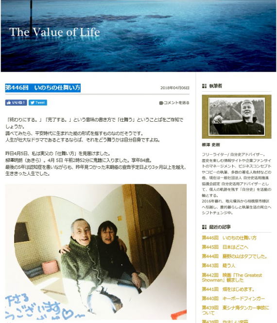 私が人の生きざまを記録する自分史の活動をライフワークとして一昨年からはじめましたが、オフィシャルで発表する作品が父になるとは、予想だにしませんでした。