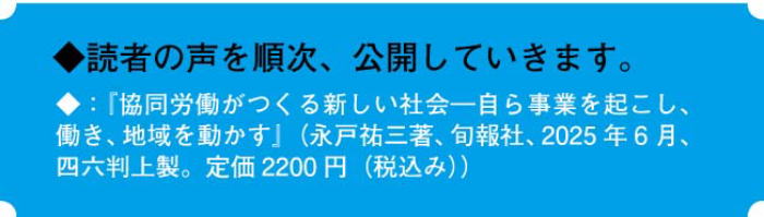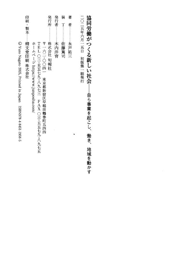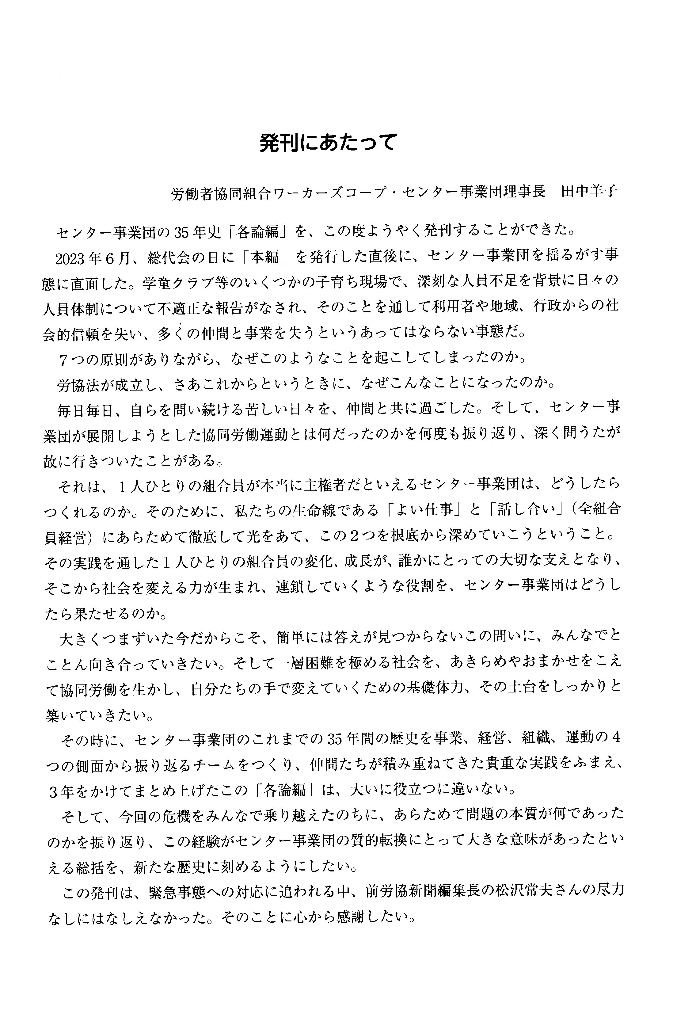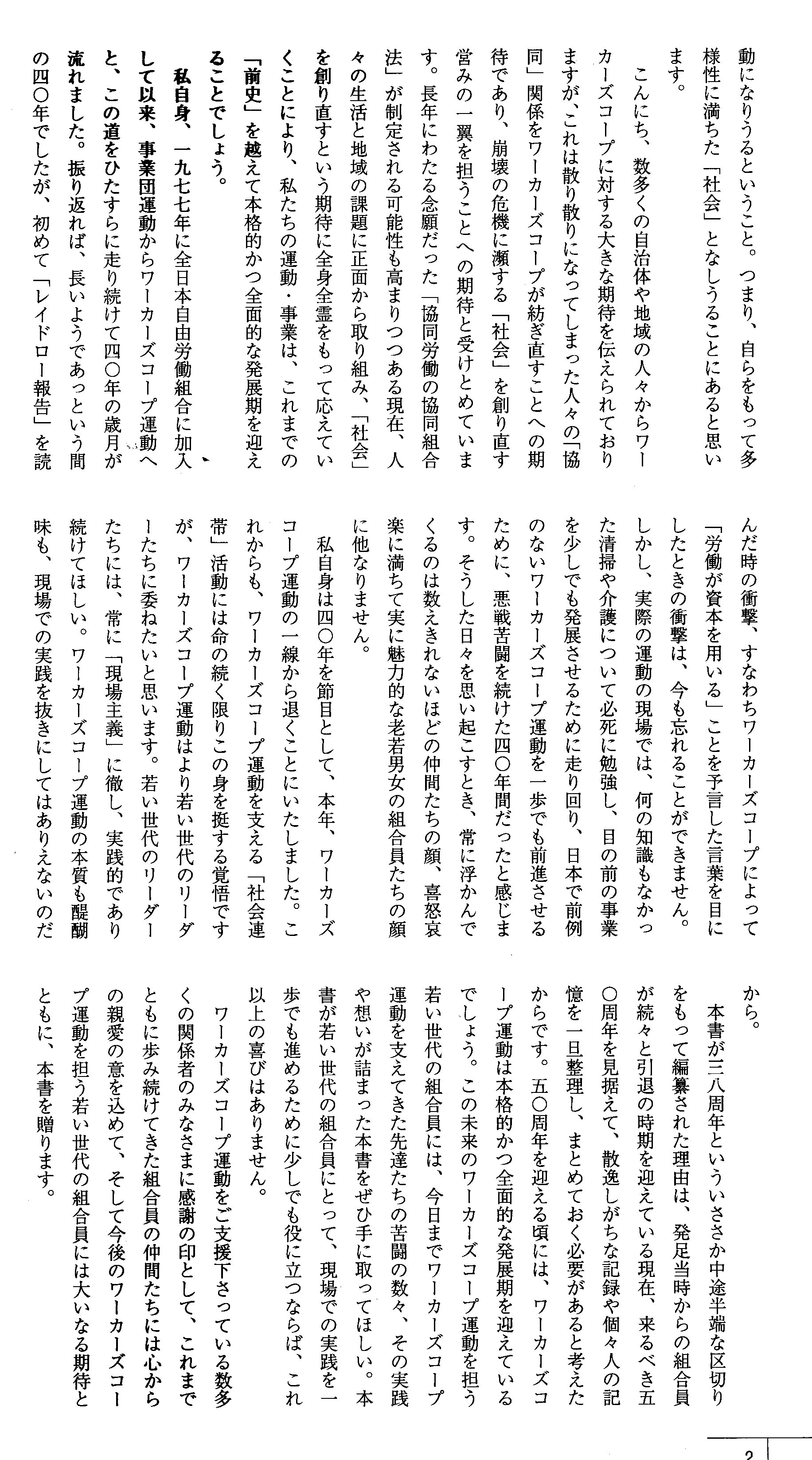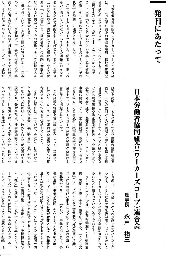 協同労働の協同組合が法制化される時代に、この三五年史が、協同労働運動のさらなる発展と飛躍、そして研究などに役立つことを期待します。