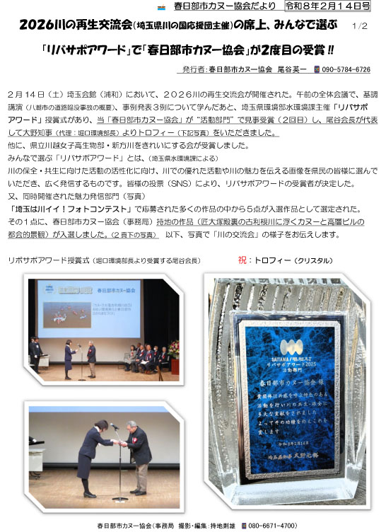 ――発行者:春日部市カヌー協会 尾谷英一(「春日部市カヌー協会だより」、 令和6年2月23日号)