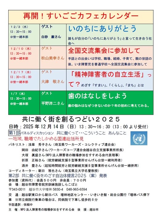 | 定款 [PDF版] 2017年度事業報告 [PDF版] 2017年度収支報告 [PDF版] 2017年度就労移行支援事業準備室会計報告 [PDF版] 2017年度貸借対照表 [PDF版] 2017年度財産目録 [PDF版] 2018年度事業計画 [PDF版] 2018年度収支予算 [PDF版] 2018年度就労移行支援事業収支予算 [PDF版] 2018年度理事・監事一覧 [PDF版] △以上全文 [PDF版] △第17回定期総会(2018.6.3) |