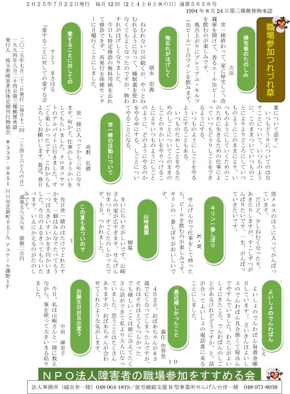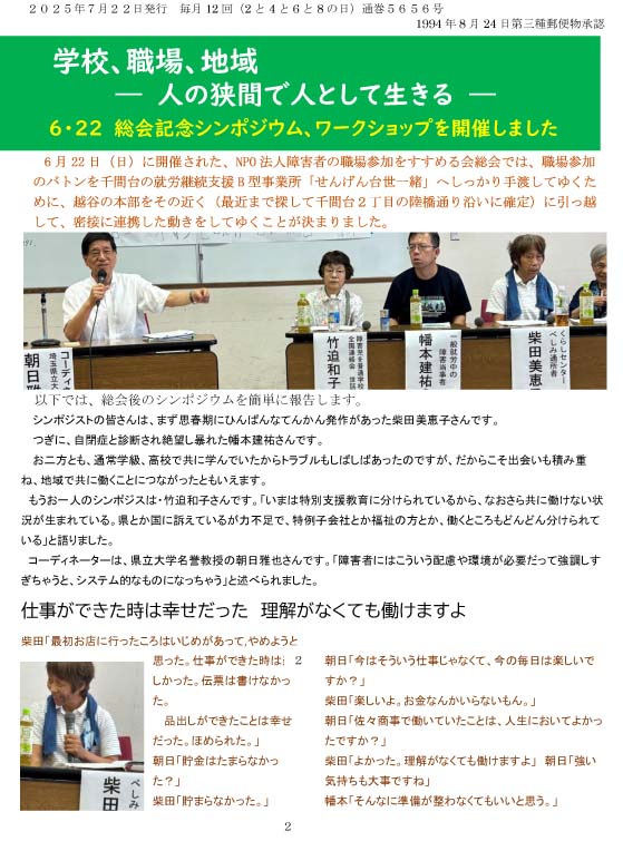 『職場参加ニュース』(No.89)、NPO障害者の職場参加をすすめる会