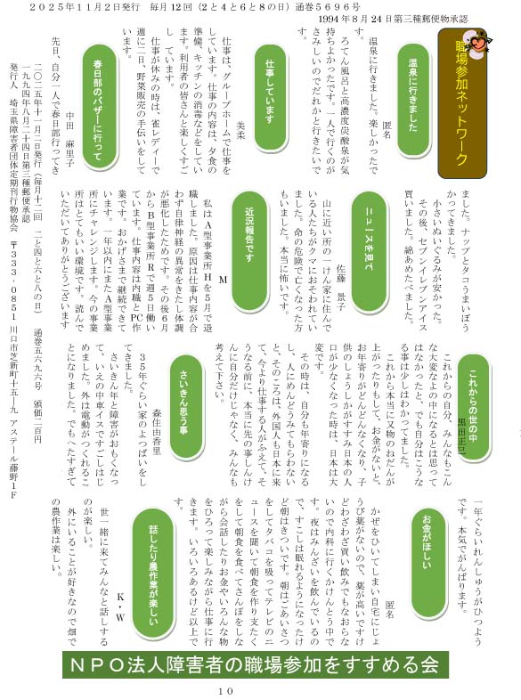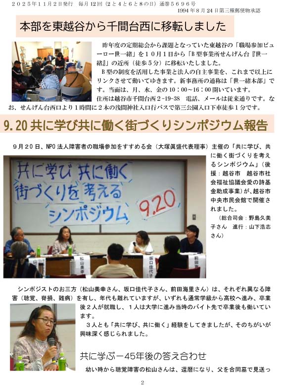 『職場参加ニュース』(No.90)、NPO障害者の職場参加をすすめる会
