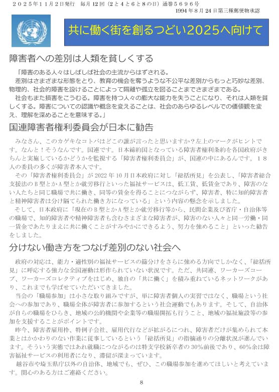 障害のある人もない人も共に生きる職場・地域を NPO障害者の職場参加をすすめる会