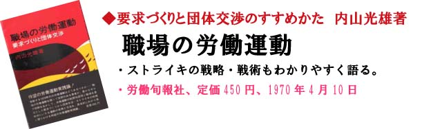 | ◇2013年8月 7日 (水):「内山光雄さんを偲ぶ」を寄贈されて(「ある編集者のブログ」に掲載。飯島信吾) 総評時代(「連合」ができる前)、「労働組合活動家」という人たちがたくさんいた。高度成長期の日本社会で、大学への入学率が1割を超えていなかった時代だ。 八幡製鉄所、石川島造船、三菱造船長崎などの著名大企業労組はもちろん、国労、全逓、全電通などの公共企業体労組、新聞・民放などのマスコミ労組、各地の地方自治体・私鉄総連など、生涯にわたって「労働者」に止まった(管理職層は別の階層)人たちが、「労働組合活動家」になった。 その時代、内山光雄さん(私鉄総連副委員長、総評副事務局長などを歴任、2010年没)は北陸の地(北陸鉄道)から、『幹部闘争から職場闘争え――北陸鉄道労組の経験を中心として』(1954年)や『職場闘争・職場オルグ――続:幹部闘争から職場闘争へ』(1959年)を書いて、今流に言えば「労働組合活性化の指針」を世に訴えた。 後にベストセラーとなった『組合活動家ノート』(1965年)、『新組合活動家ノート』(1973年)を書いた(以上の本は、労働旬報社刊)。 ![]() 内山さんは「職場の組織づくりとして職場闘争をつよめ、産業別統一闘争の組織化も積極的に追求し、のちの春闘の基礎づくりを私鉄総連を中心に発揮したリーダー」だ。 『追悼文集 内山光雄さんを偲ぶ』を読むと、16人の方が文章を寄せられている。兵頭釗さんや高木郁朗さんは知っているが、私たちの先輩の小松善雄さんが『職場の労働運動』の編集経過を書いているので、いつか紹介したいと思っていた。 裏方で何回か春闘講座で実務をやった経験があるが、内山さんはたいへん大柄の人で、豊富な経験をわかりやすく話し、圧倒された思い出がある。御本人に聞いたことがあるが、話のつかみや展開などは落語を学んでいたようだ。 仕事しては、単産研究として「私鉄総連の研究」(1970年代後半)を企画したときに、お世話になった(この文集では、高木郁朗さんが書かれている)。 その後、「観光労連の研究」を企画して、ツーリスト職場に何回かレジュメ作りでお伺いした記憶があるが、それも内山さんのアドバイスだったことも思い出した。 しかし「文集」を読むと、生涯にわたって「内山学校」をみずから開いて、組合活動家を育てていたことがよくわかる。 内山さんは、1970年代には妹さんが労働教育センターをつくり、その後の出版物はほとんどセンターから出すようになった。 ❖内山光雄の本 おすすめランキング: 評伝として『はじめに人間ありき―内山光雄と戦後労働運動』(池田実・前川 清治著、労働教育センター、2002年)がある。 ![]() 連合、全労連、全労協に分かれている今、新しい「ユニオン活動家ノート」を書き、ナショナルセンターを超える人づくりを追求する人材が出てくるのだろうか。 編集子としては期待したい。 『追悼文集 内山光雄さんを偲ぶ』【上記の執筆者一覧】 『追悼文集 内山光雄さんを偲ぶ』(2012年11月19日、「内山光雄さんを偲ぶ」編集委員会、総評退職者会気付、03-3251-0311) ▽『現代労働組合研究会のページ』へ。 |